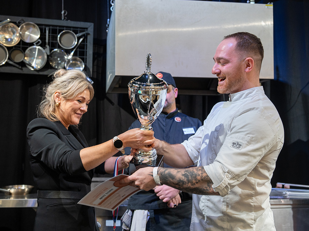 Chef Mariusz Olesiński van Viviamo Woerden heeft een uitzonderlijke prestatie geleverd tijdens het NK Lekkerste Pasta op de Horecava. Voor het tweede jaar op rij maakte hij zo veel indruk dat de jury hem unaniem als winnaar aanwees. Hij is daarmee de eerste deelnemer die twee keer achter elkaar het NK Lekkerste Pasta wint.